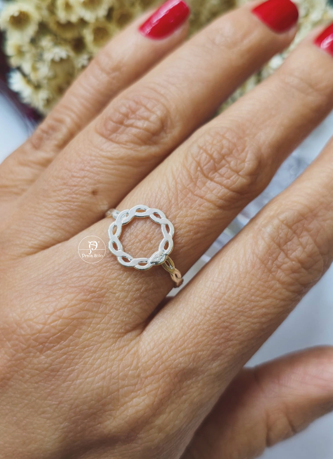 Anel geométrico com aro trançado