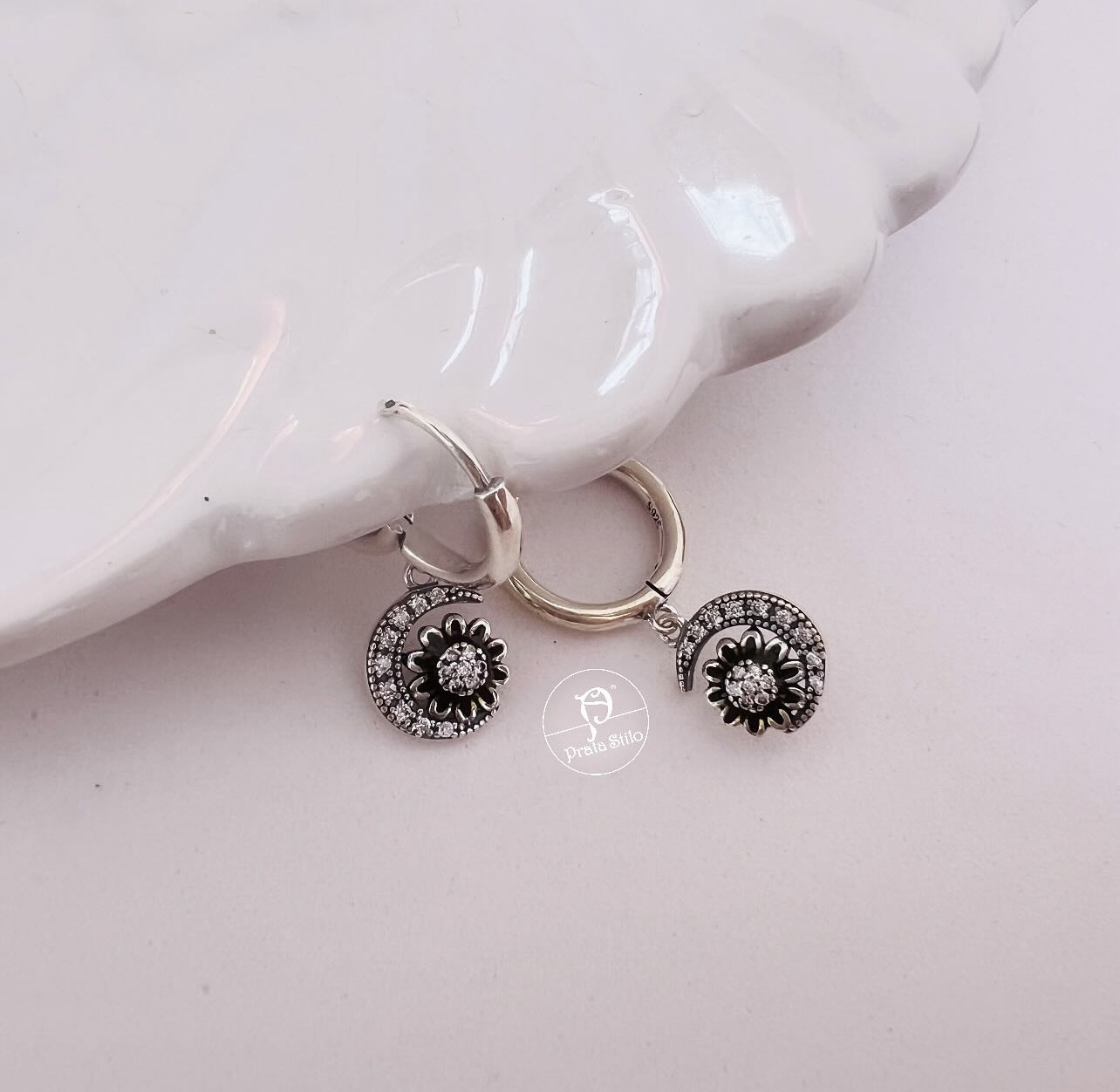 Não sei meu CEPArgola Sol e lua com designer envelhecido com pedras zircônia